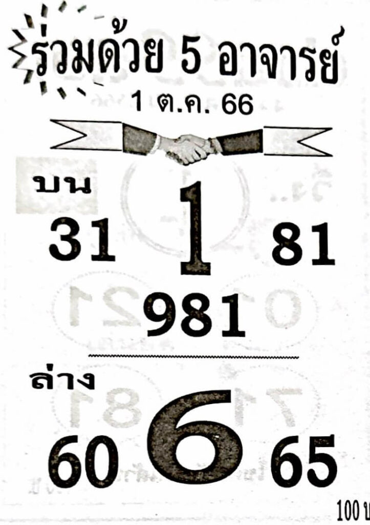 หวยร่วมด้วย 5 อาจารย์ 1/6/68