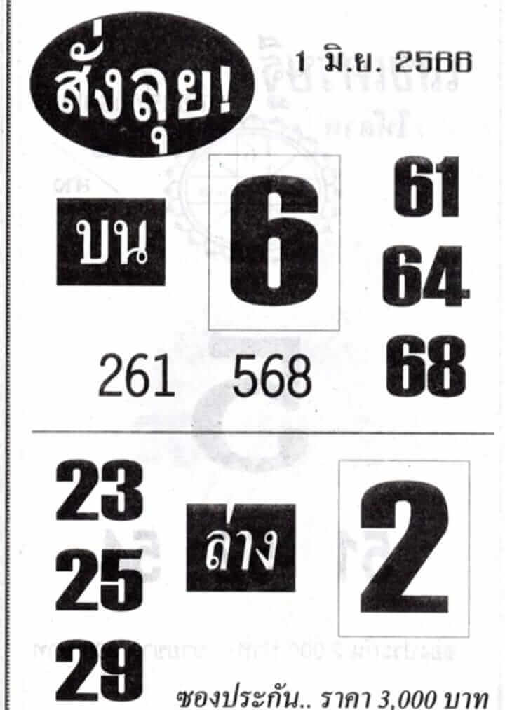 หวยสั่งลุย 1/6/68 จับคู่เลขเด็ดงวดนี้