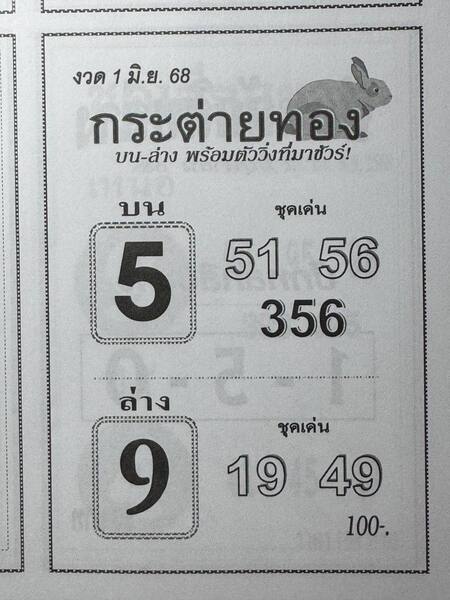 หวยกระต่ายทอง 1/6/68