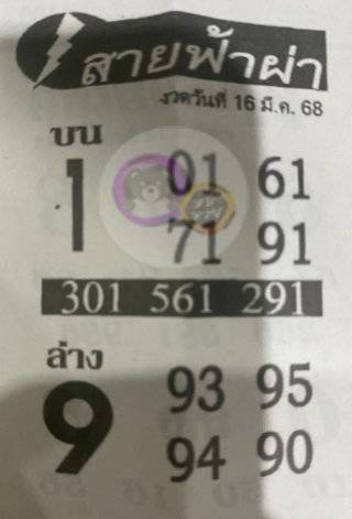หวยสายฟ้าผ่า 1/6/68 ส่องหวยซองฟ้าผ่างวดนี้