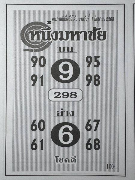 หวยหนึ่งมหาชัย 1/6/68