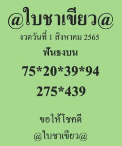 หวยใบชาเขียว 1/3/68 ฟันธงเลขเด็ดบน 2-3 ตัว เข้าแน่นอน