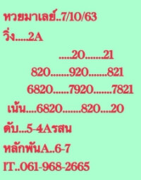 แนวทางหวยมาเลย์ 7/10/63 วิเคราะห์เลขเด็ดหวยมาเลย์วันนี้
