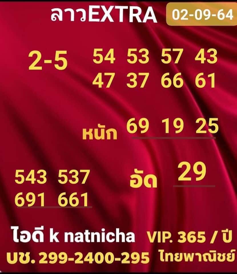 แนวทางหวยลาว 2/9/64 หวยลาว VIP เลขคนดัง