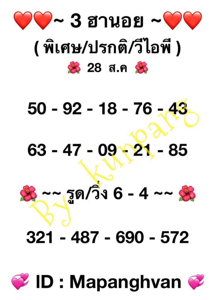 แนวทางหวยฮานอย 28/8/66