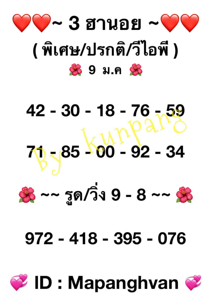 แนวทางหวยฮานอย 9/1/66